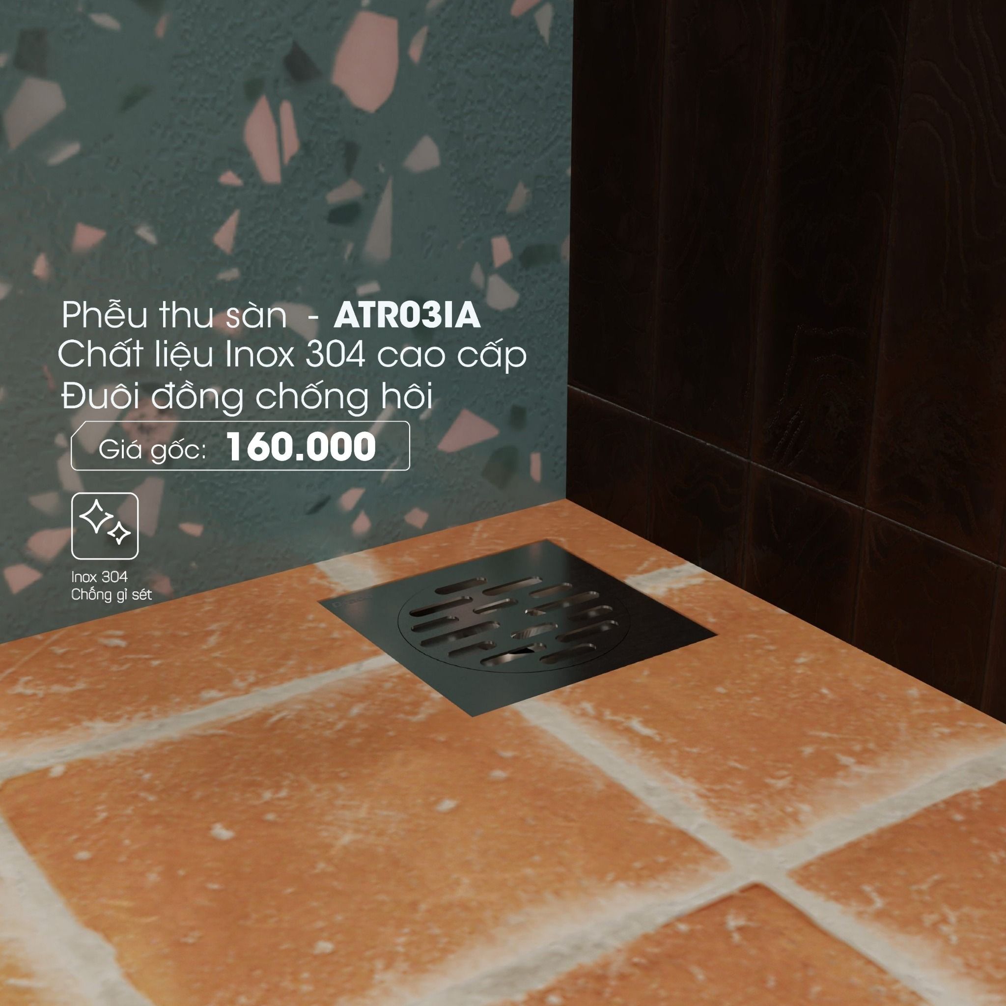 9. Phễu Thoát Sàn Draco ATR03IA Inox 304 Đuôi Đồng