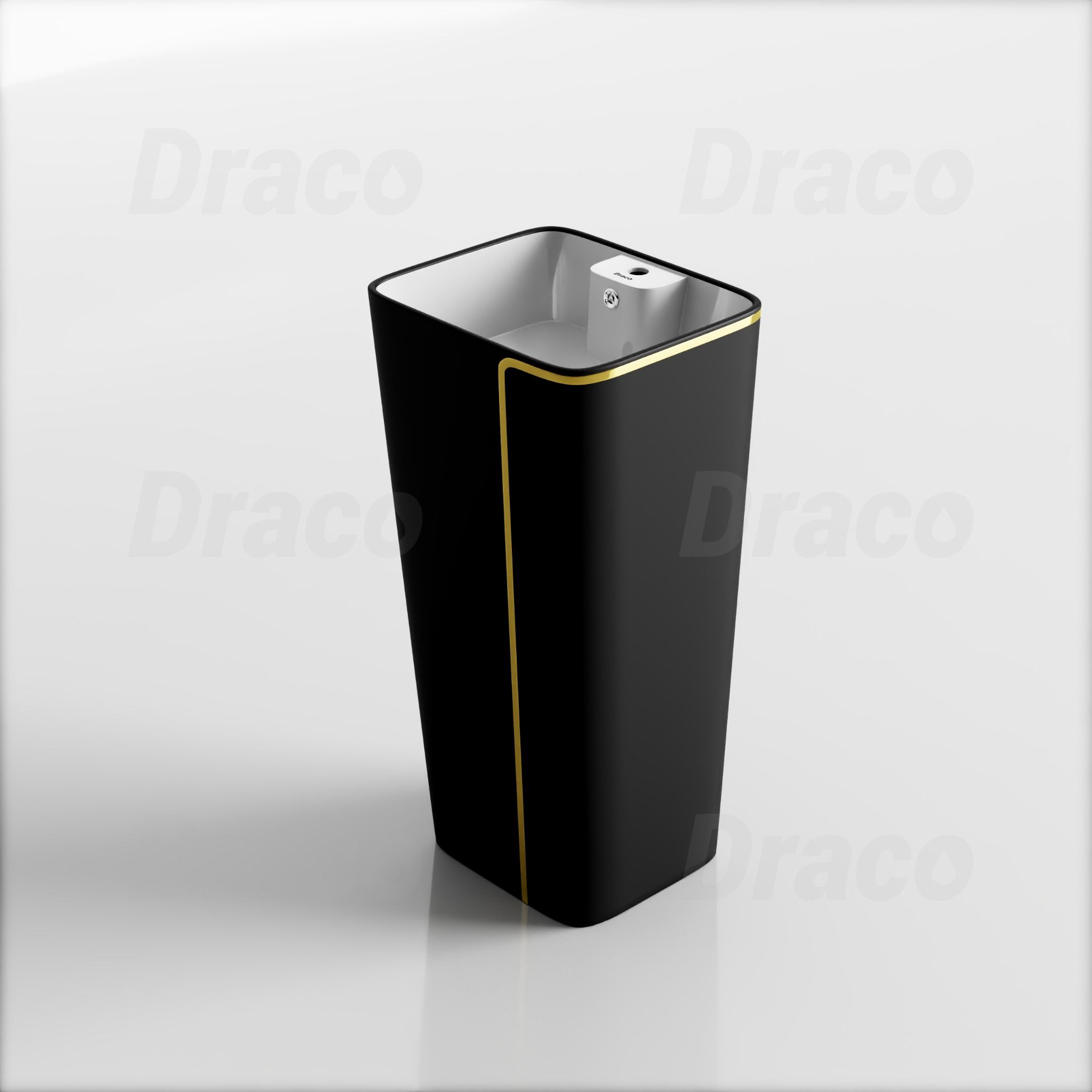 - Tên sản phẩm: Lavabo Trụ Đứng Liền Khối Vuông Viền Vàng Draco T2404