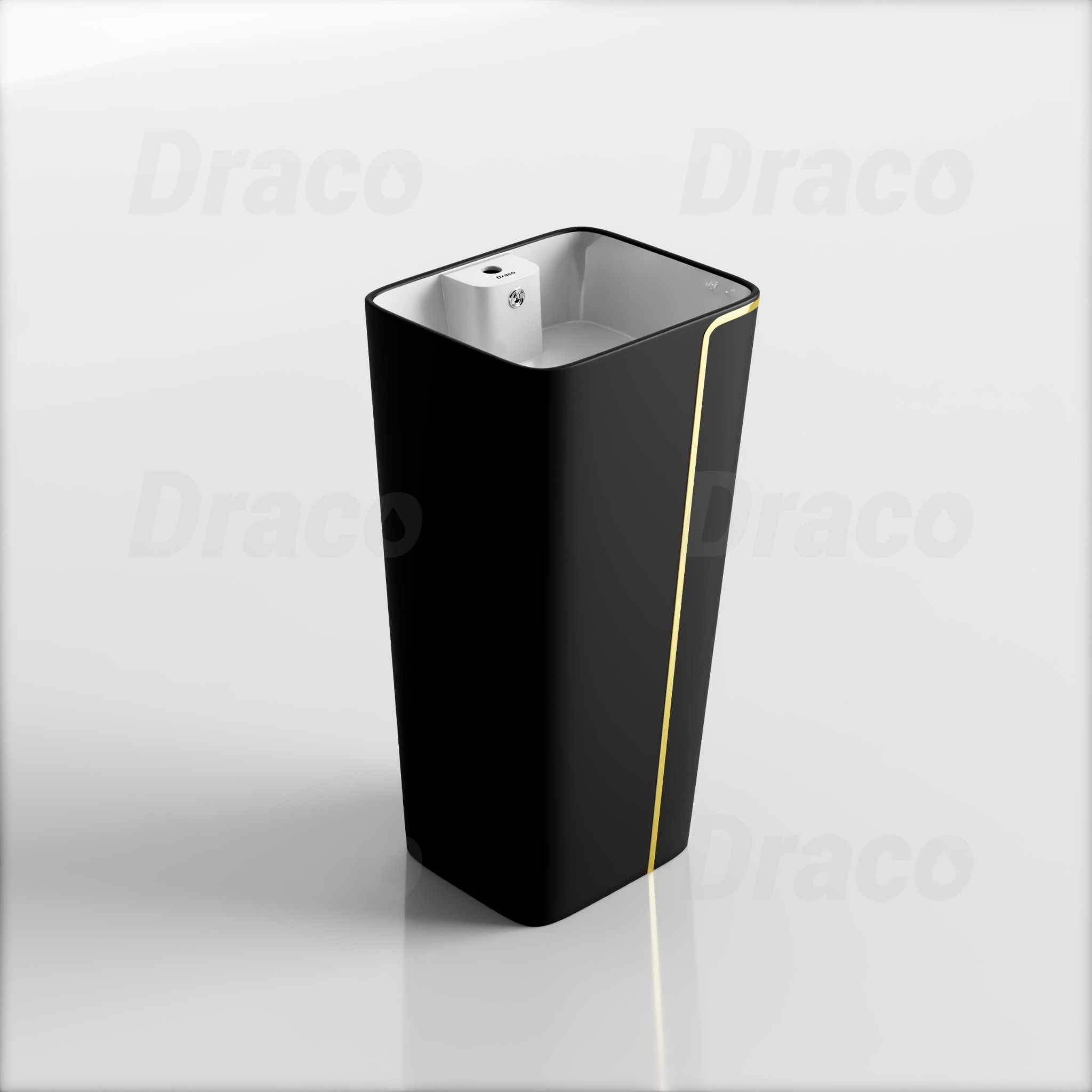 01. Lavabo Trụ Đứng Liền Khối Vuông Viền Vàng Sứ Đen Draco T2404SB