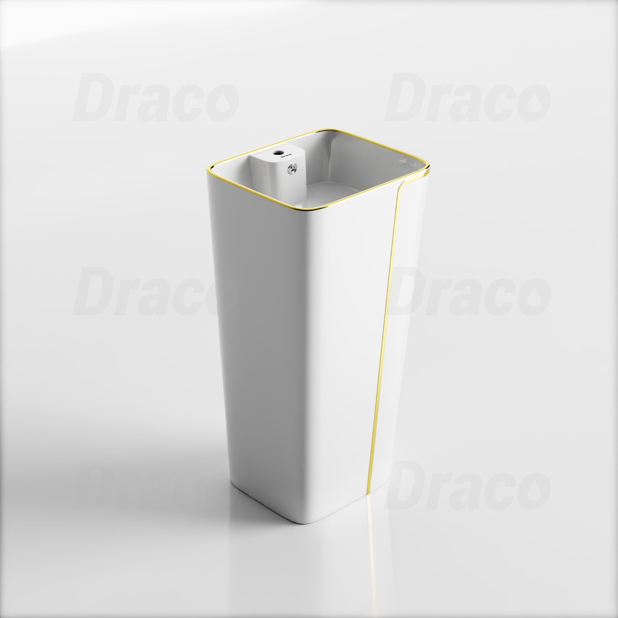 - Tên sản phẩm: Lavabo Trụ Đứng Liền Khối Vuông Viền Vàng Draco T2404