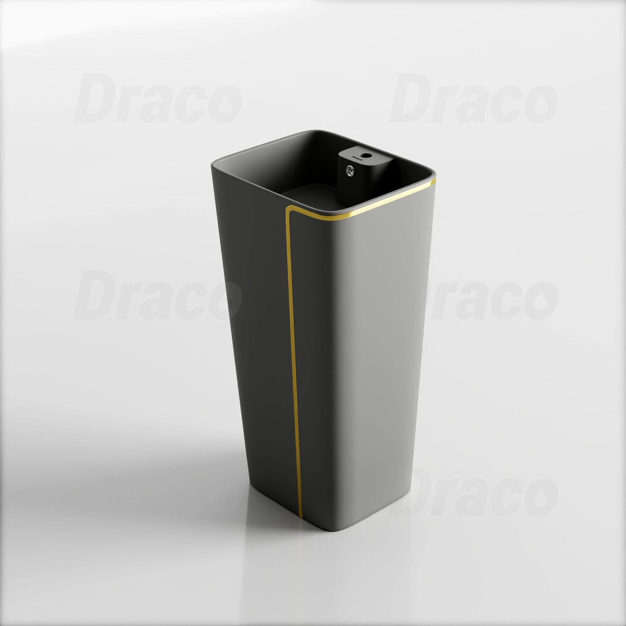 02. Lavabo Trụ Đứng Liền Khối Vuông Viền Vàng Sứ Xám Draco T2404SG