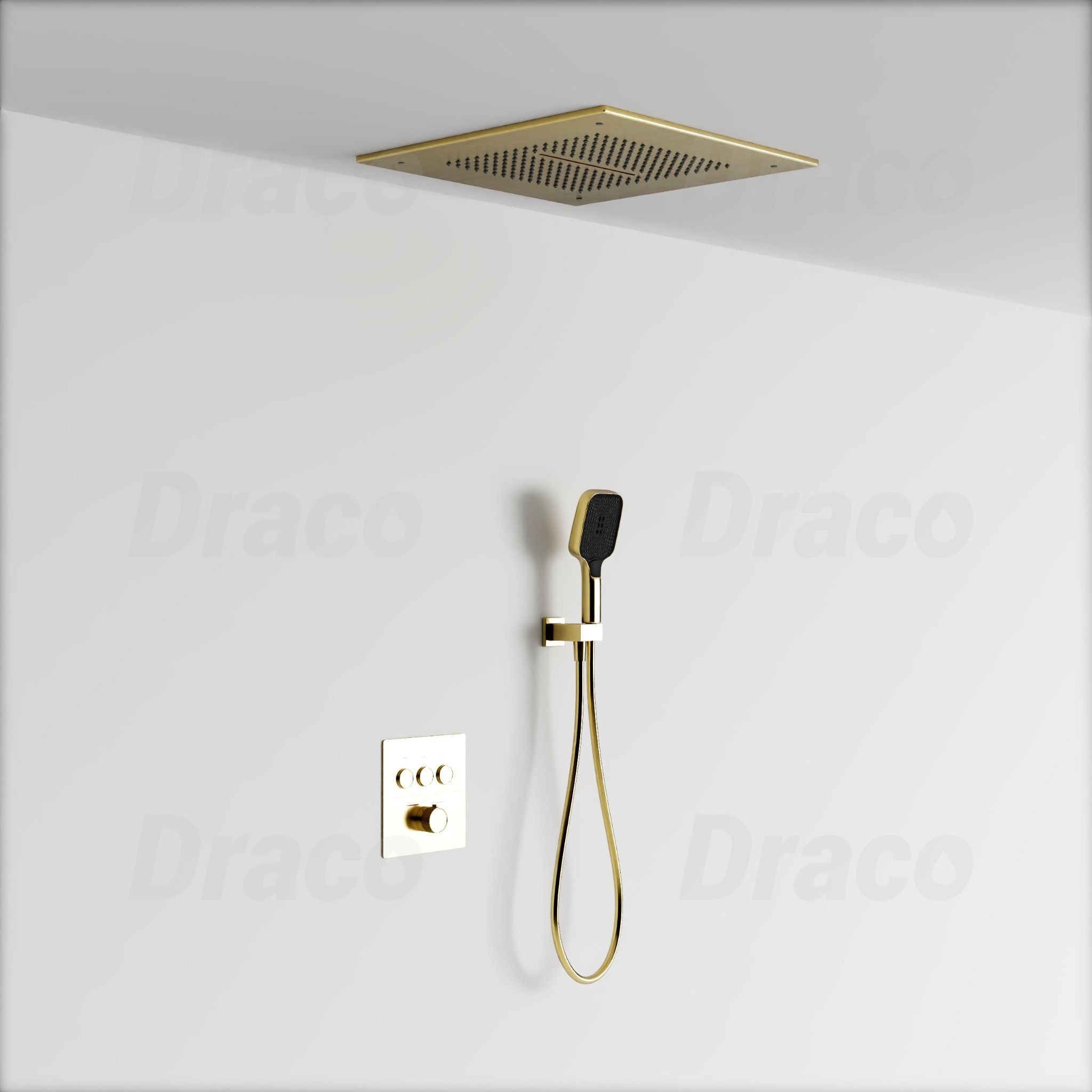 - Tên sản phẩm: Sen Tắm Âm Trần Đồng Thau Dạng Nút Bấm Có Khóa Nhiệt Độ Draco F0390G
