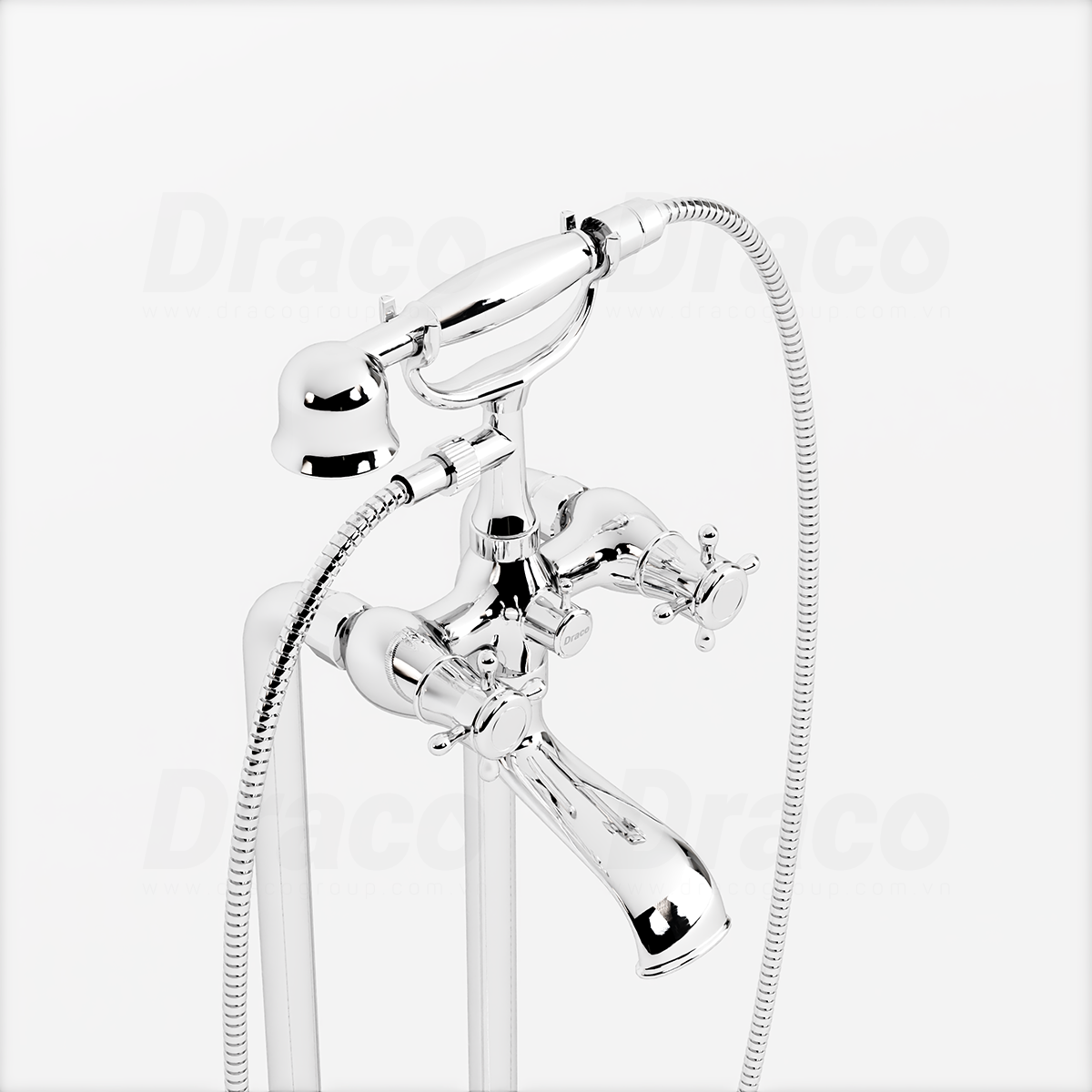 01. Sen Tắm Bồn Đứng Nóng Lạnh Đồng Mạ Crome Kiểu Cổ Điển Draco F0415C