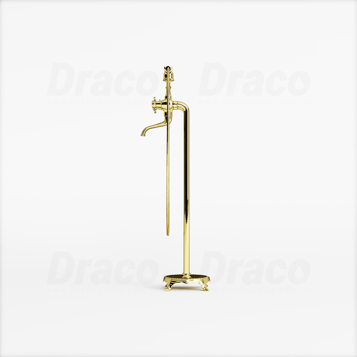 02. Sen Tắm Bồn Đứng Nóng Lạnh Đồng Mạ Vàng Bóng Kiểu Cổ Điển Draco F0415G