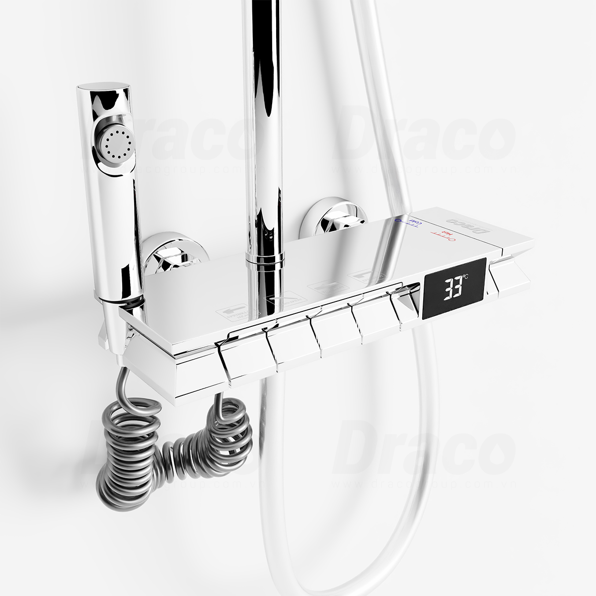 01. Sen Tắm Đứng Nóng Lạnh Đồng Thau Mạ Crom Hiển Thị Nhiệt Độ Dạng Phím Đàn Draco F0147C