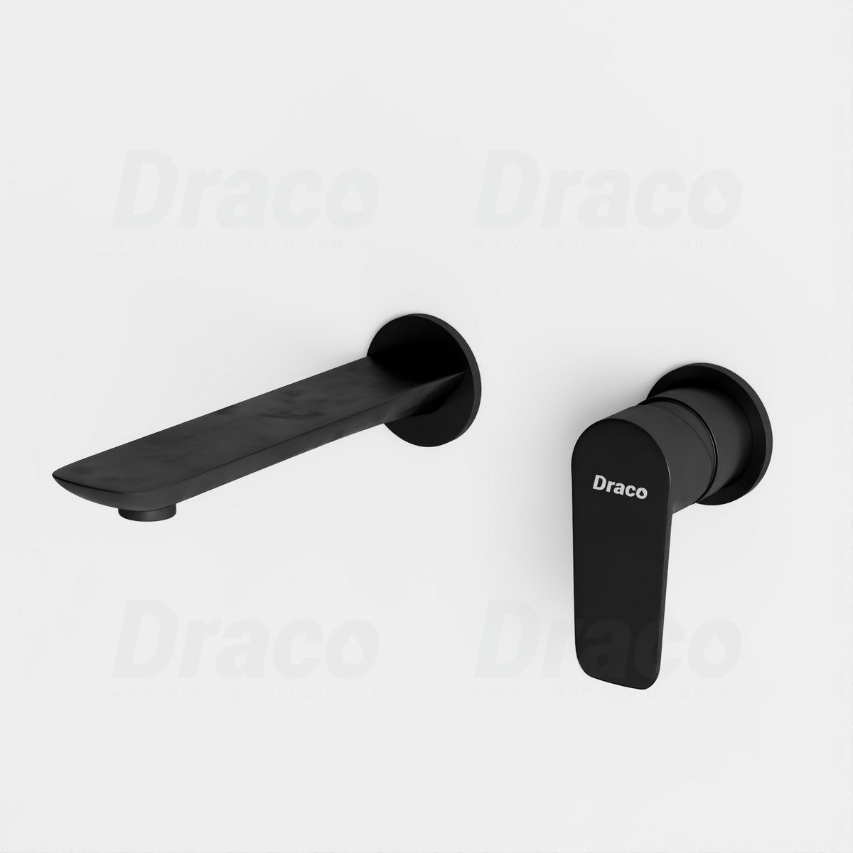 02. Vòi Lavabo Âm Tường Nóng Lạnh Đồng Thau Phủ Sơn Tĩnh Điện Đen Draco F2409B