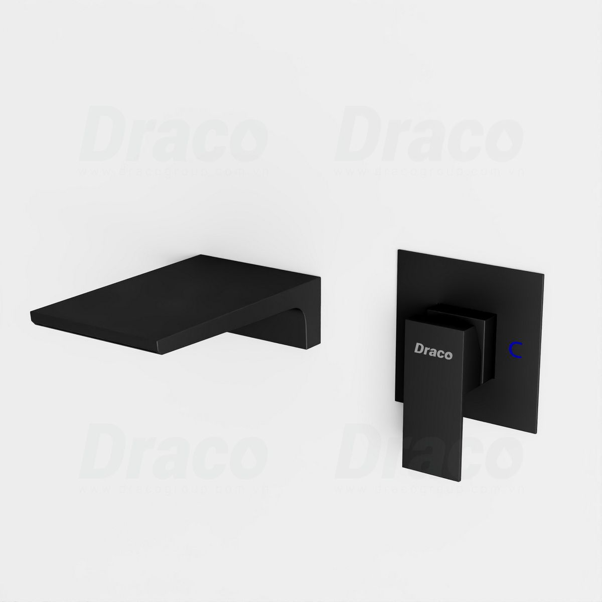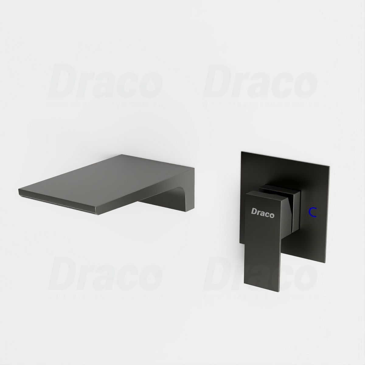 02. Vòi Lavabo Âm Tường Nóng Lạnh Đồng Thau Phủ Sơn Tĩnh Điện Đen Draco F2411B
